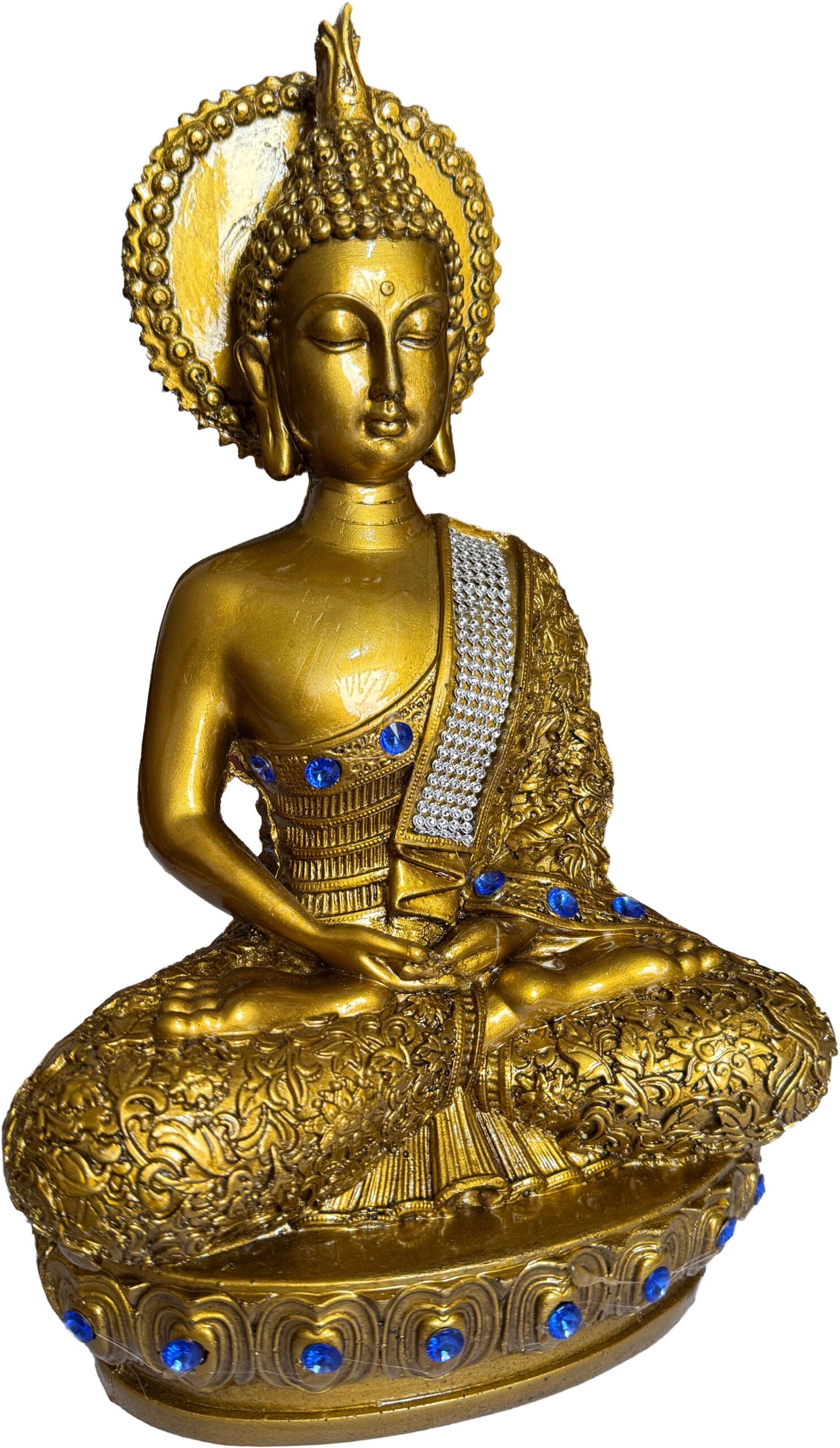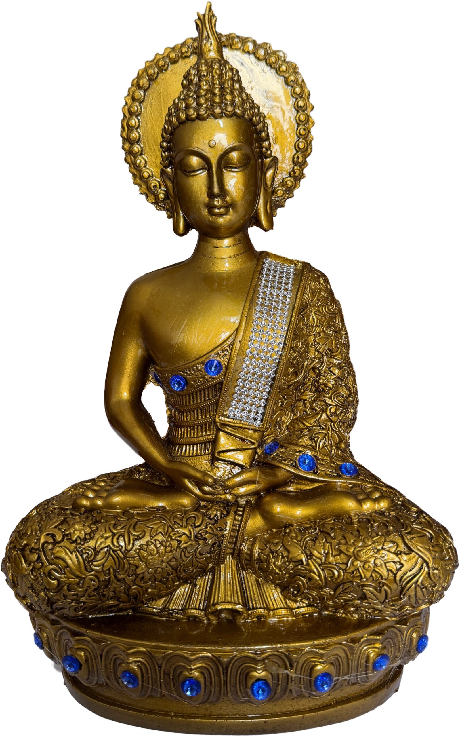 Elegant Design: Ceramic statue with gold and silver highlights for a luxurious, spiritual look