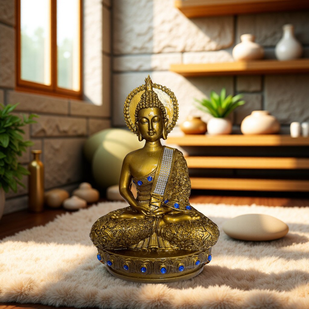 Divine Buddha Idol in Meditation Pose – 15 cm Ceramic Decorative Showpiece for Home, Office, Temple & Spiritual Gifting